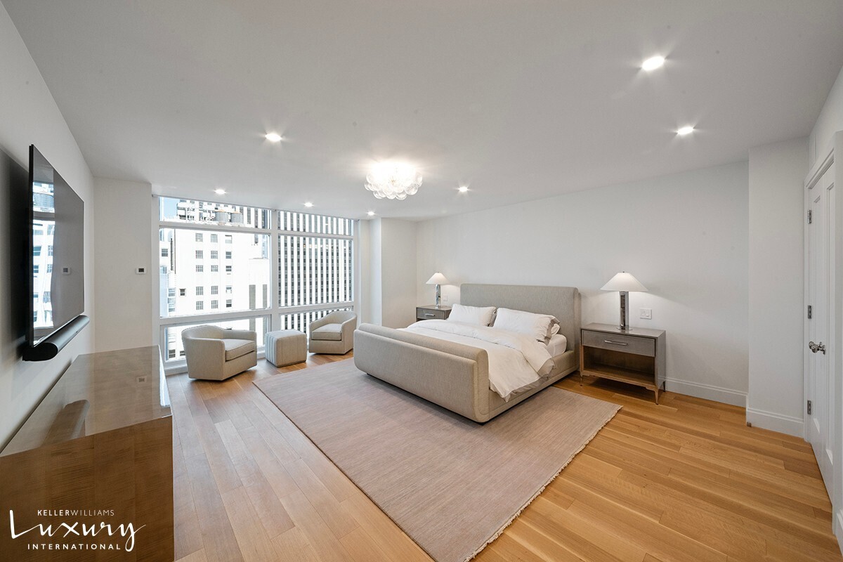 NOT VIRTUALLY STAGED DONT MISS THIS BRAND NEW SHOWSTOPPING ONE-OF-A-KIND DESIGNER RENOVATION. Occupying the premier corner of Trump Tower, this spectacular, bright and spacious 2,580 sq. ft. three bedroom, three and one-half bathroom apartment has just undergone an extensive full renovation resulting in a magnificently designed space with incomparable views of Central Park and the City to the North, West and South through floor-to-ceiling windows. It should be specifically noted that walls have actually been removed and windows added creating a one-of-a-kind space and experience. Entering the apartment you move through the elegant, beautifully tiled entry foyer, which holds a discreet and artfully decorated half bathroom and a large closet, and turn into the living area where you are greeted with a truly breathtaking panoramic view of Central Park, the architectural masterpiece which is the top of the former Crown Building (now the Penthouse of the new Aman New York) and the City as it follows Fifth Avenue downtown towards the iconic Empire State Building. Inside this incomparable view is the gloriously open living and entertaining space which has been fluidly divided into multiple seating areas, including a large dining table and chairs. This grand living space extends to the south through magnificent glass pocket doors into a corner den with a full en-suite marble bath and large closet, readily privatized to function as a third bedroom, and also enjoying views of the Empire State Building to the south and the City to the west. Off of the living area is an open dream eat-in kitchen with an elegant wide white quartz countertop with informal counter seating, serving both the living area and kitchen with a wet bar and wine fridge. The kitchen has been outfitted with sleek soft close white cabinetry and top-of-the-line stainless steel and integrated appliances, including a Bertazzoni stove and ovens, a Miele refrigerator and a Bosch dishwasher. An elegant nook with banquette seating, a television and a window overlooking Central Park further enhance the beauty and function of this outstanding kitchen. Across the hall is a laundry closet with a stacked LG washer/dryer. Following the rich white oak, wide-plank flooring that flows throughout the apartment, one reaches the hallway leading to the bedroom wing. First, you reach the secondary bedroom with amazing direct views of Central Park, a large closet and an en-suite marble bath also with spectacular views of Central Park. Entering the antechamber of the primary bedroom suite one passes by an oversized dressing room with built-in cabinetry before reaching the generously proportioned bedchamber which offers a stunning view of Central Park and additional closet space. The substantial en-suite marble bathroom has a large shower, a separate tub, twin standalone sinks and vanities, linen closets and a private lavatory. The apartment has just been fully designer furnished in a most inviting and elegant presentation, ready for the immediate occupancy of the most discerning purchaser. 3 Trump Tower is located at 721 Fifth Avenue in the midst of some of the most celebrated high-end shopping in the world. This famed condominium offers full-time doorman and concierge service, attended elevators, with valet, laundry and housekeeping services available to residents. Added in 2021 is a fabulous new amenity floor offering a fitness center including Peloton bikes, a circuit training space and a stretching corner, a private yoga studio, a coffee/wet bar, a residential lounge, private event space, chef's table, stadium seating movie theater, library, business center, conference rooms, children's playroom, billiards room and more.