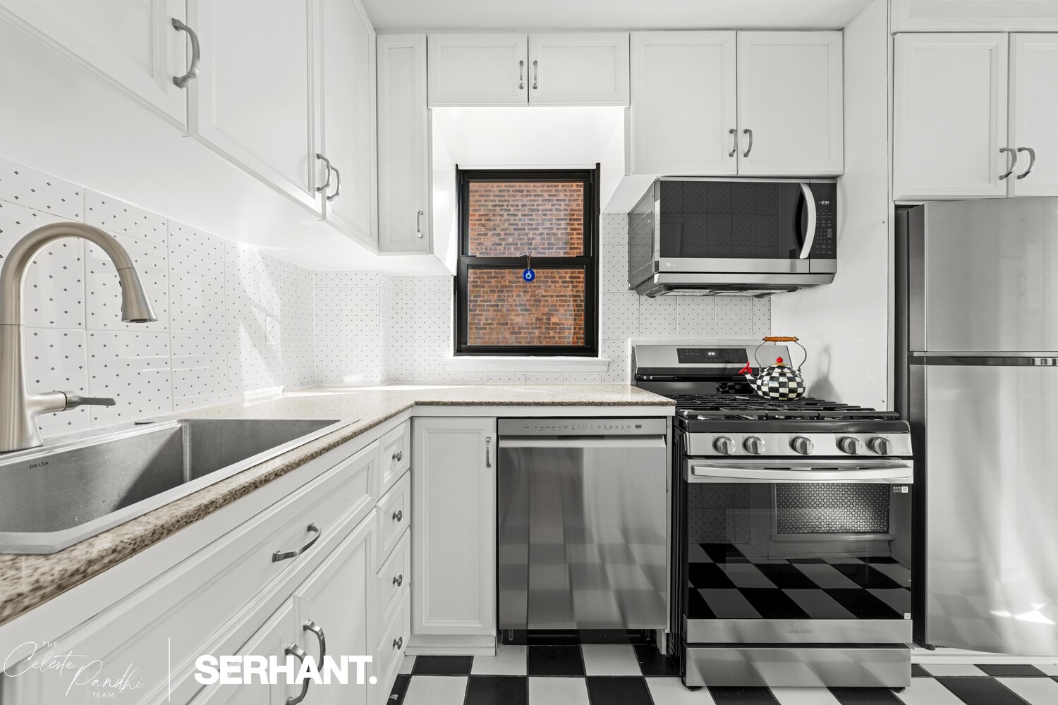 The primary bedroom easily fits a California king and has 2 closets with super quiet Northern exposure. There is also a window in the bathroom and tiled finishes. The foyer has a walk-in closet and coat closet and there is also a linen closet near the bathroom (5 closets total). Hardwood floors throughout. Don't miss this corner unit in the heart of Lenox Hill!