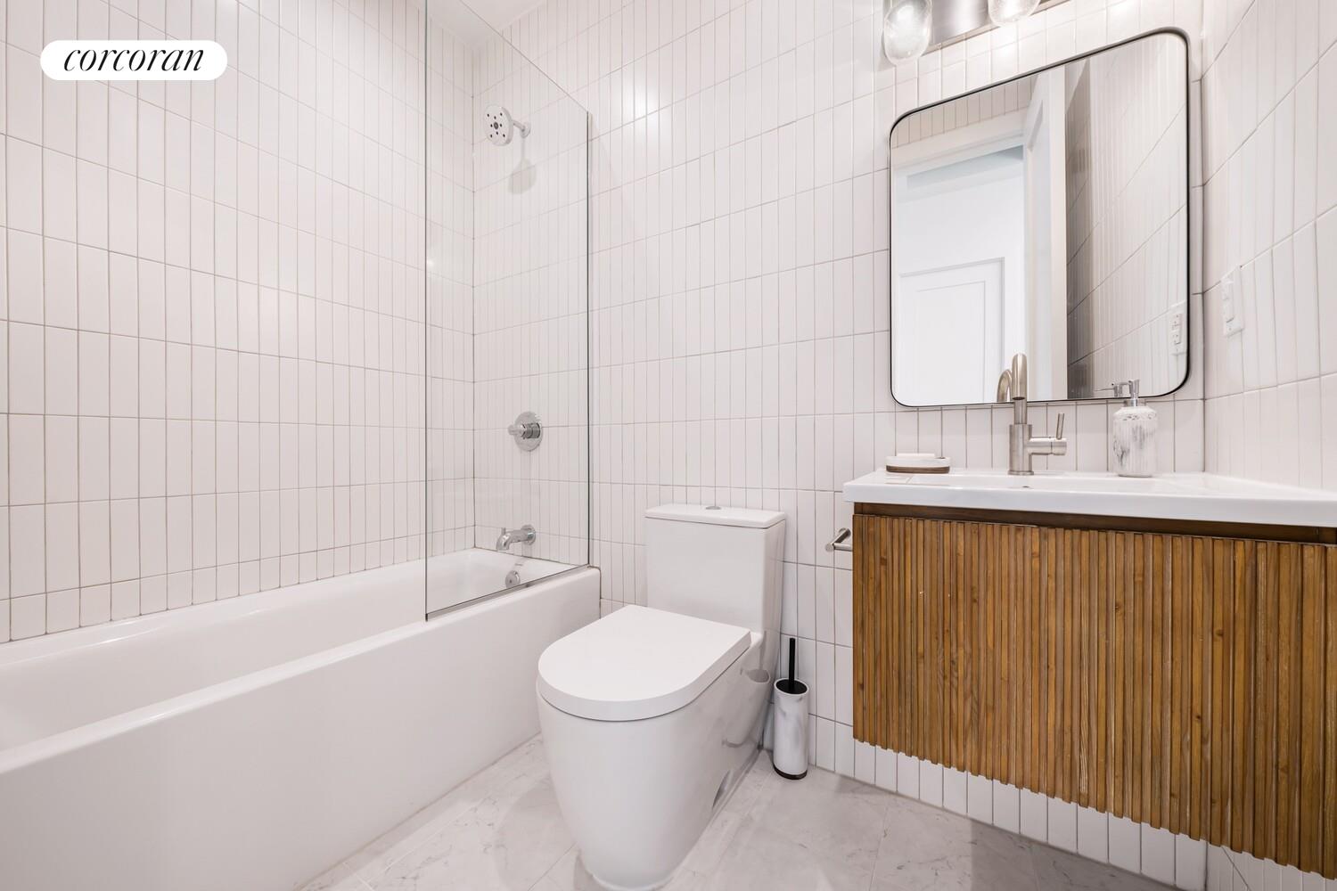 This level welcomes you with a separate entrance and a garden-level entry vestibule. This unit is configured with a large one bedroom, a full bathroom, a stylish and modern open kitchen concept outfitted with Stainless Steel appliances, a breakfast bar and a stackable washer/dryer.