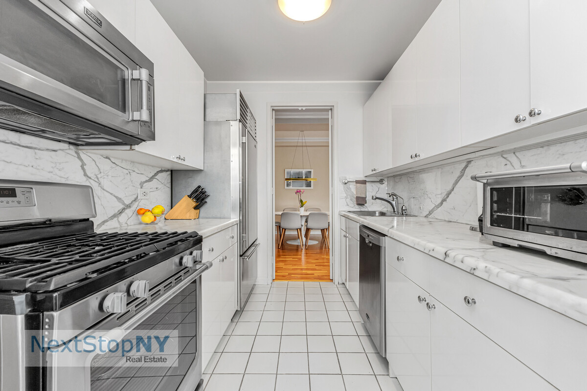 Sunny and spacious, this beautifully designed 3-bedroom, 3-bath corner home offers open south and west exposures and a rare 1,949 sq.ft. layout with a coveted split-bedroom floorplan. The impressive 29-foot Great Room features 9'4" beamed ceilings, oversized windows, and Brazilian hardwood floors. The windowed eat-in kitchen is appointed with white marble countertops, Sub-Zero refrigeration, new stainless steel appliances, and a breakfast bar with sweeping city views.