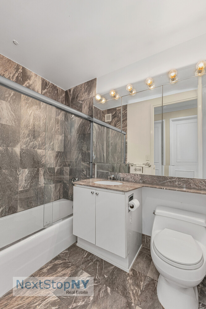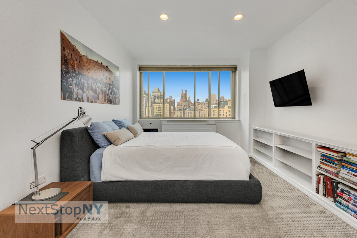 The large primary bedroom includes two walk-in closets and an en-suite marble bath. The generously proportioned secondary bedrooms each enjoy open city views, excellent storage, and CitiQuiet soundproof windows. The home also includes three full marble bathrooms, a vented washer/dryer, recessed lighting, custom cabinetry, crown molding, and an oversized storage closet.