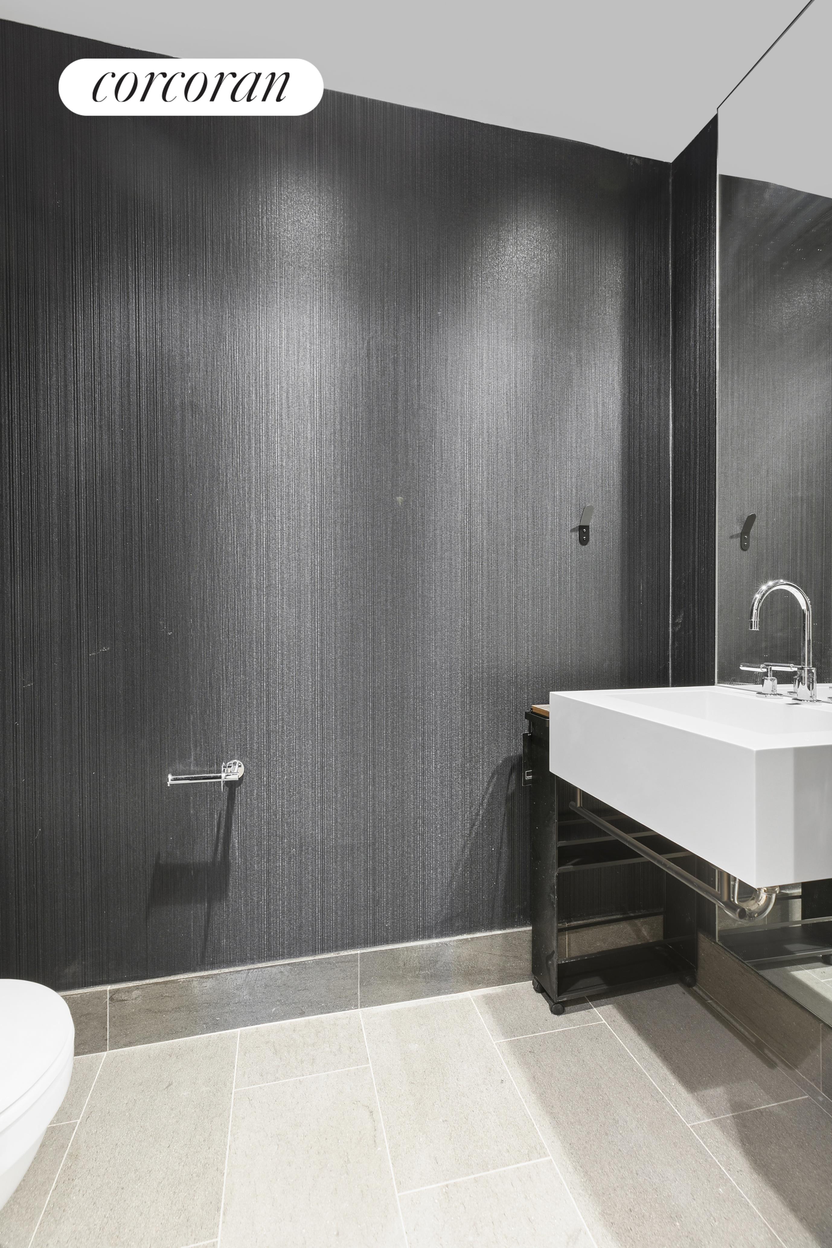The primary suite features two generous walk-in closets and a spa-like bath with radiant-heated Alanur-honed marble floors, Imperial Danby countertops, a custom walnut vanity, and a glass-enclosed shower with thermostat and volume regulators. The secondary bedroom offers its own ensuite marble bath with a deep soaking tub. A stylish powder room with honed marble finishes, a Corian vanity, and floor-to-ceiling mirror completes the home. Additional features include electric blinds in all windows, an in-unit washer/dryer and a large private storage unit.
