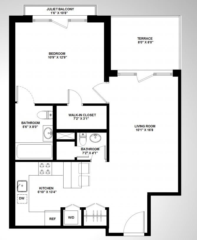 This slick one-bedroom apartment with ONE and HALF bathrooms is superbly crafted with a smart layout and thoughtful attention to materials and finishes. The residence unfolds and the sun sets upon a spacious light-filled living room with floor-to-ceiling windows and natural oak hardwood floors throughout. The designer kitchen features hydraulic cabinets, high-end stainless steel appliances, and WASHER/DRYER. The bathrooms’ floors and walls are wrapped in porcelain and Burlington tiles and feature deep soak tubs and frame-less glass-enclosed showers with rain-style shower heads. The bedroom hosts ample closets. Enjoy the sun or simply relax on YOUR PRIVATE TERRACE. And did I mention the nine feet high ceilings and enforced concrete walls for sound isolation? From built-in-the-wall speakers to individually controlled CENTRAL AIR conditioners, this home has every inch engineered for your enjoyment. It can be delivered FULLY FURNISHED (with the items seen in the photos) or UNFURNISHED.